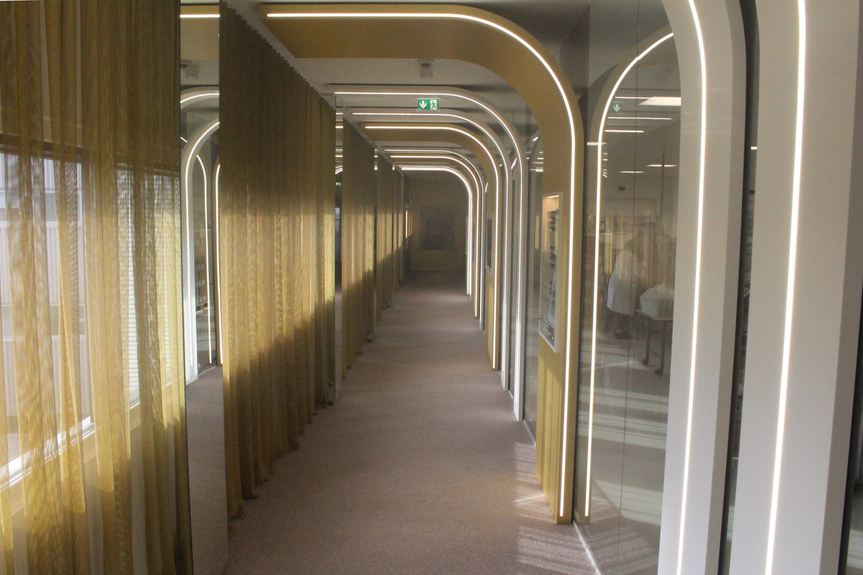 Auch wird ein großer Teil der Verwaltung in dem Neubau angesiedelt und erhalten ansprechende Arbeits- und Konferenzräume.